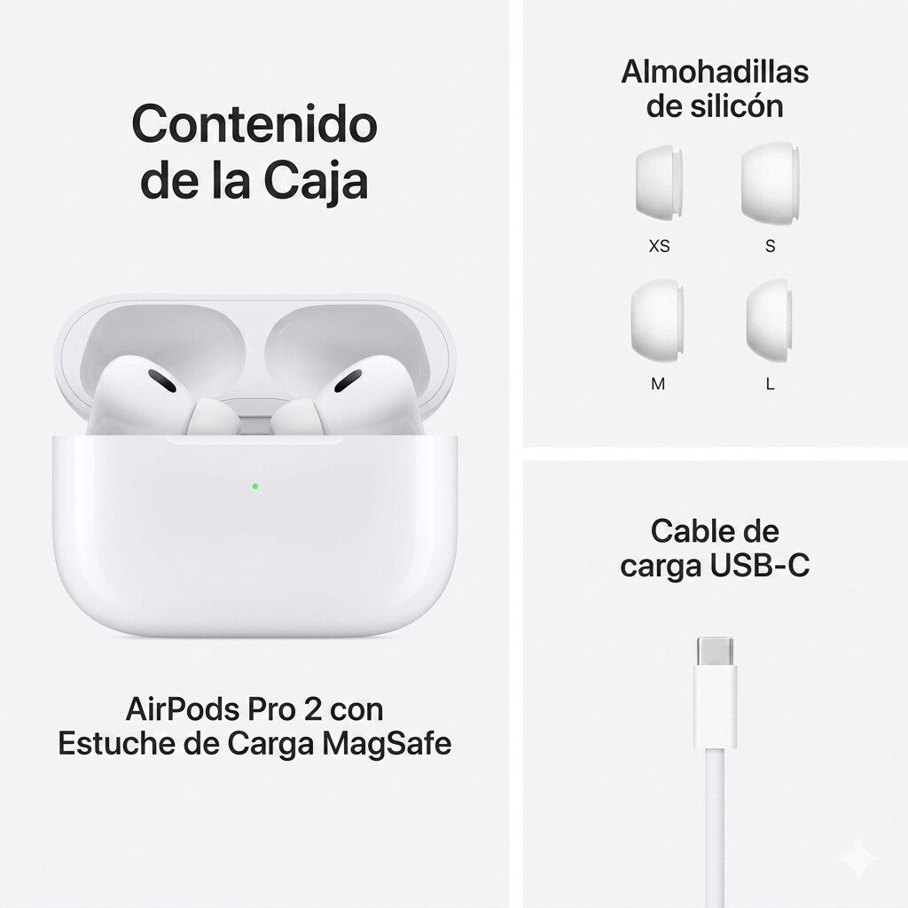 Los AirPods Pro 2, te ofrecen cancelación activa de ruido, modo transparencia y audio adaptativo que se ajusta a tu entorno. Incorporan función de ayuda auditiva, brindando una experiencia más completa y pensada para tu bienestar. Disfruta de su sonido de alta calidad. Su diseño inalámbrico con conexión Bluetooth los hace prácticos, cómodos y perfectos para el uso diario, ya sea para música, llamadas o contenido multimedia.